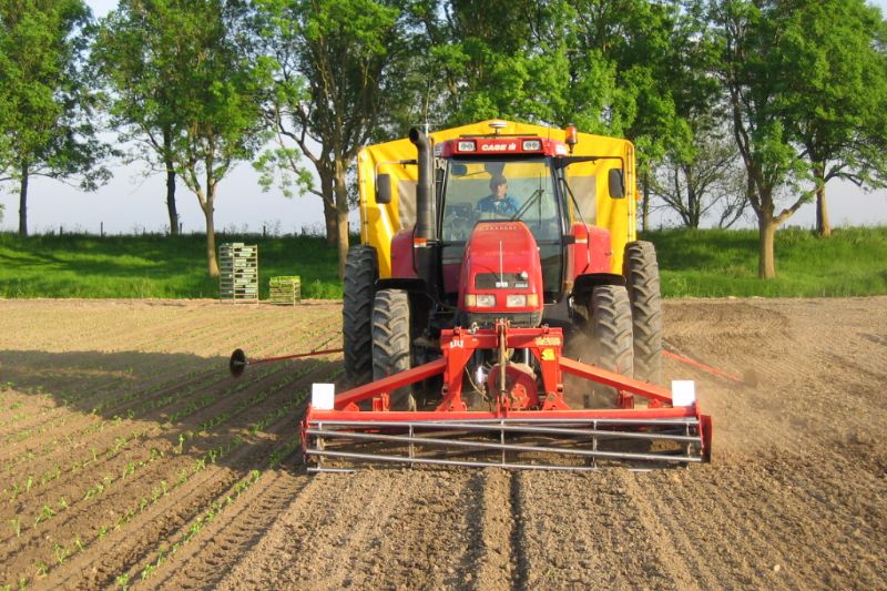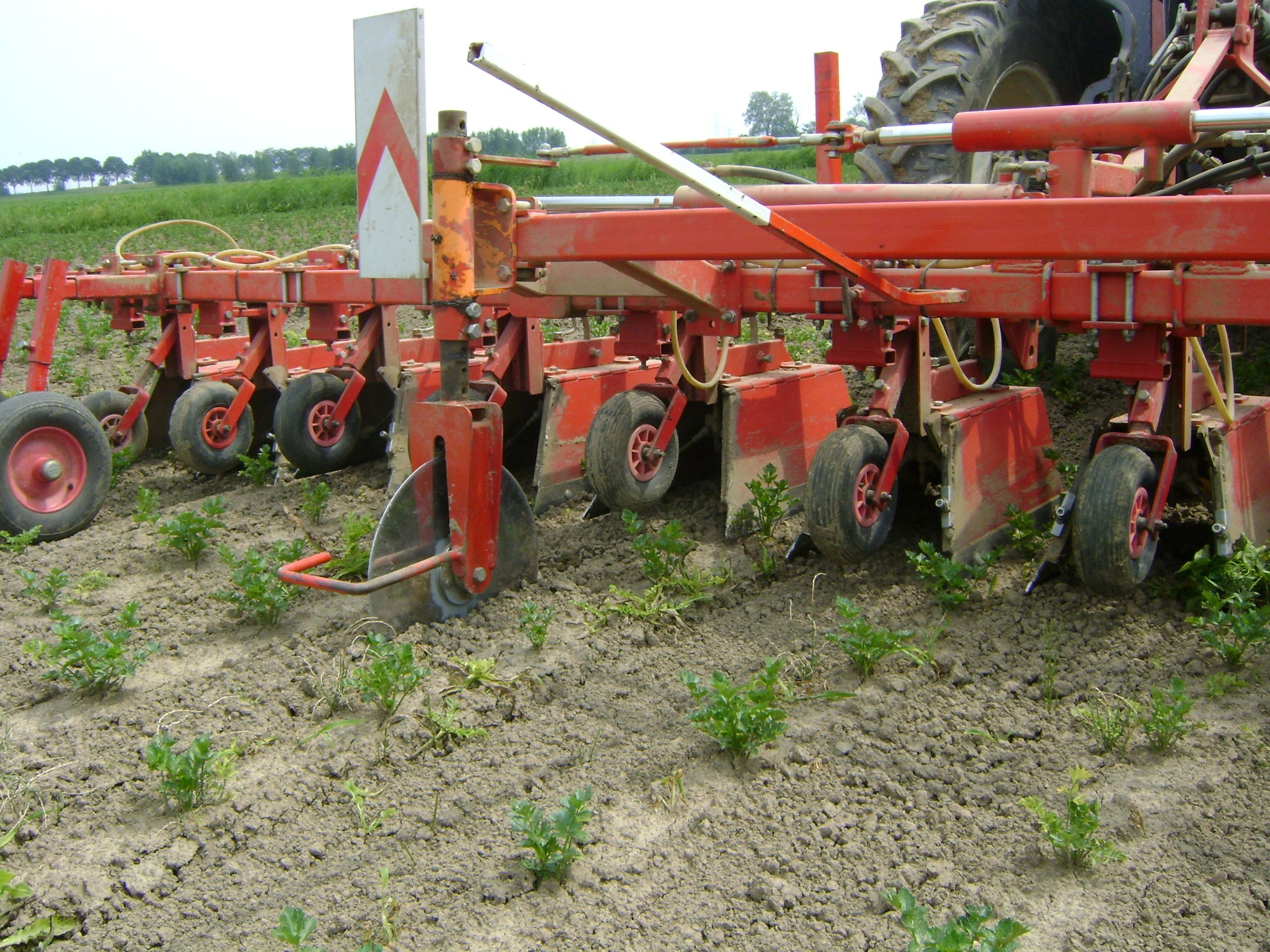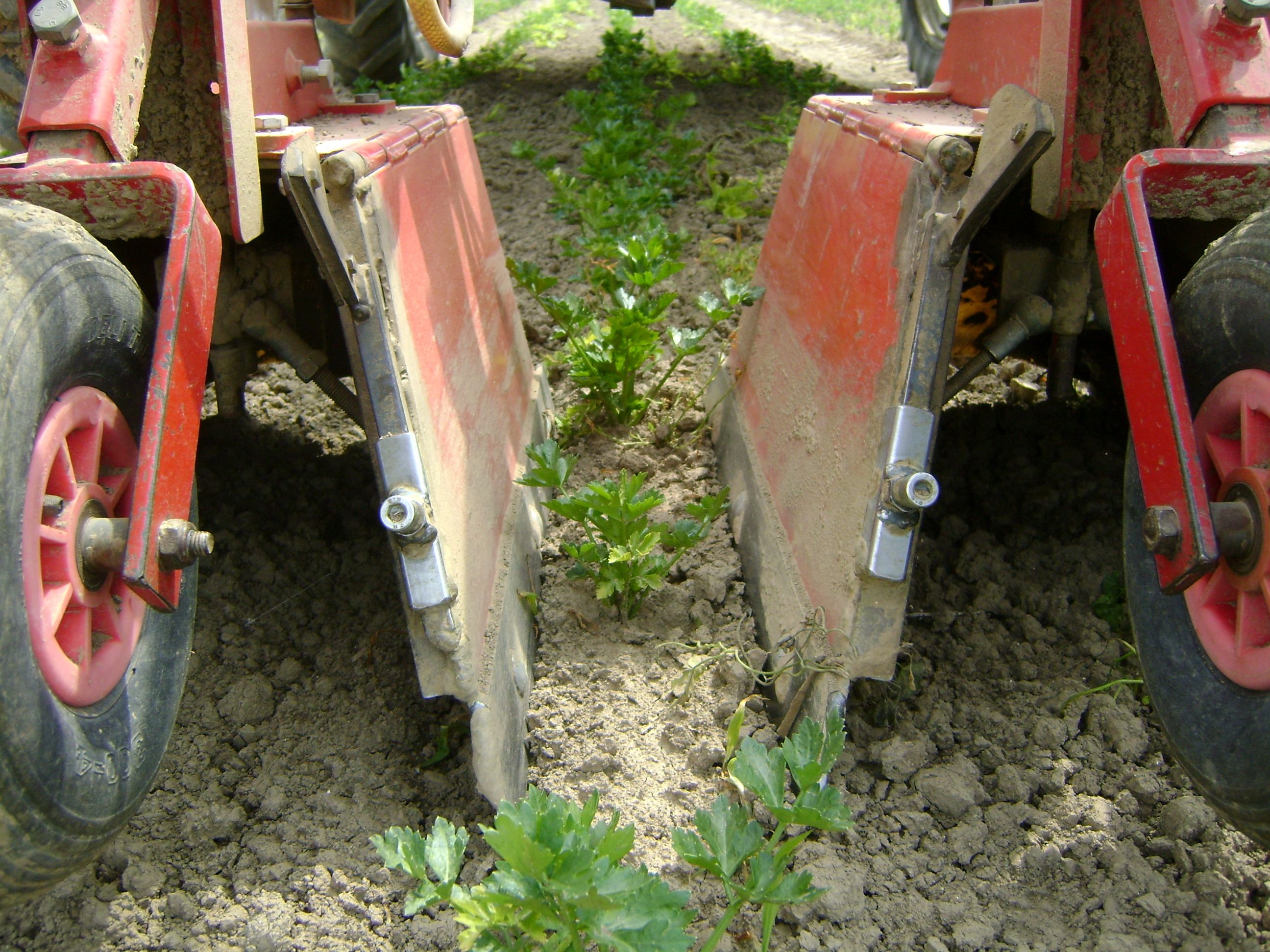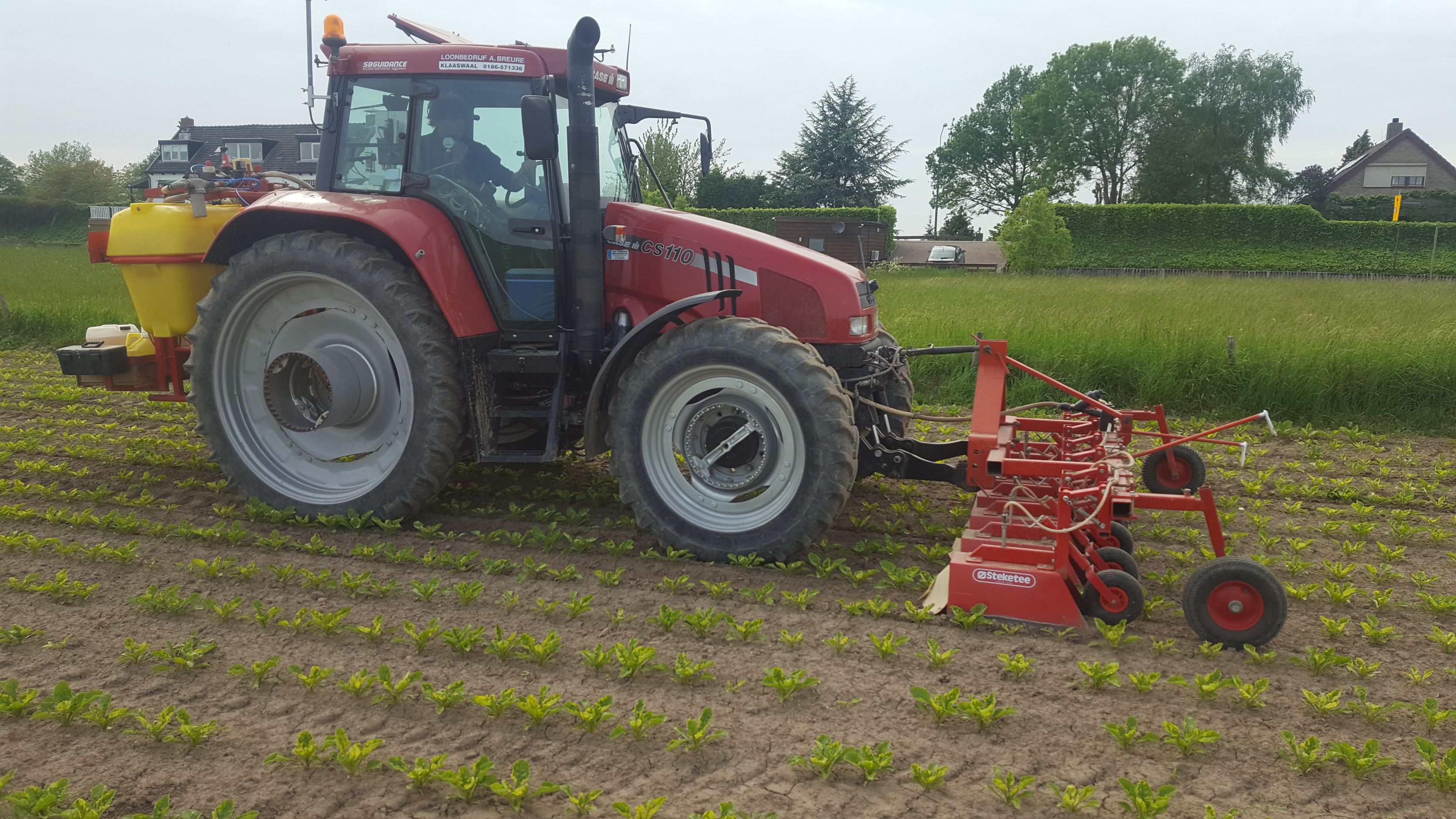 De werkzaamheden in de verzorging van de knolselderij zijn bij Loonbedrijf Breure vooral het schoffelen en het rijenspuiten. Voor het schoffelen gebruiken we een 6 rijige Kongskilde Vibroflex. Daarnaast kan het nodig zijn een bespuiting uit te voeren met onze 6 rijige Steketee Multispray kappenspuit.