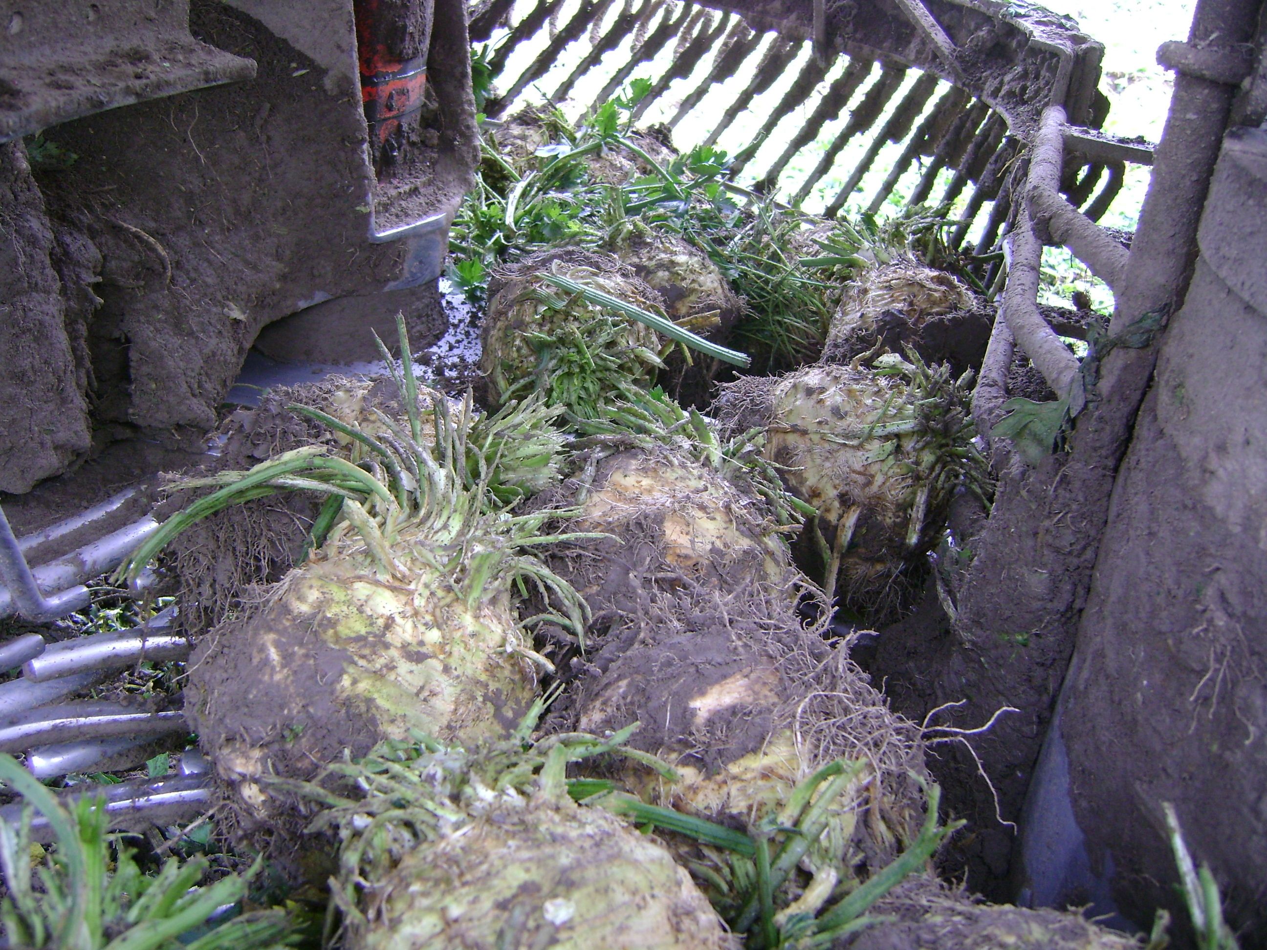 Voor het rooien van knollen gebruiken we 1 van onze Holmer Terra-Dos rooimachines. Deze rooier is standaard voorzien van poetsers en andere rooischaren. De Holmer is uitermate geschikt voor het rooien van knolselderij, vanwege de ruimte en capaciteit in de machine, zodat een grote produkt stroom met lage reinigingstoeren verwerkt kan worden en geen beschadiging optreedt.