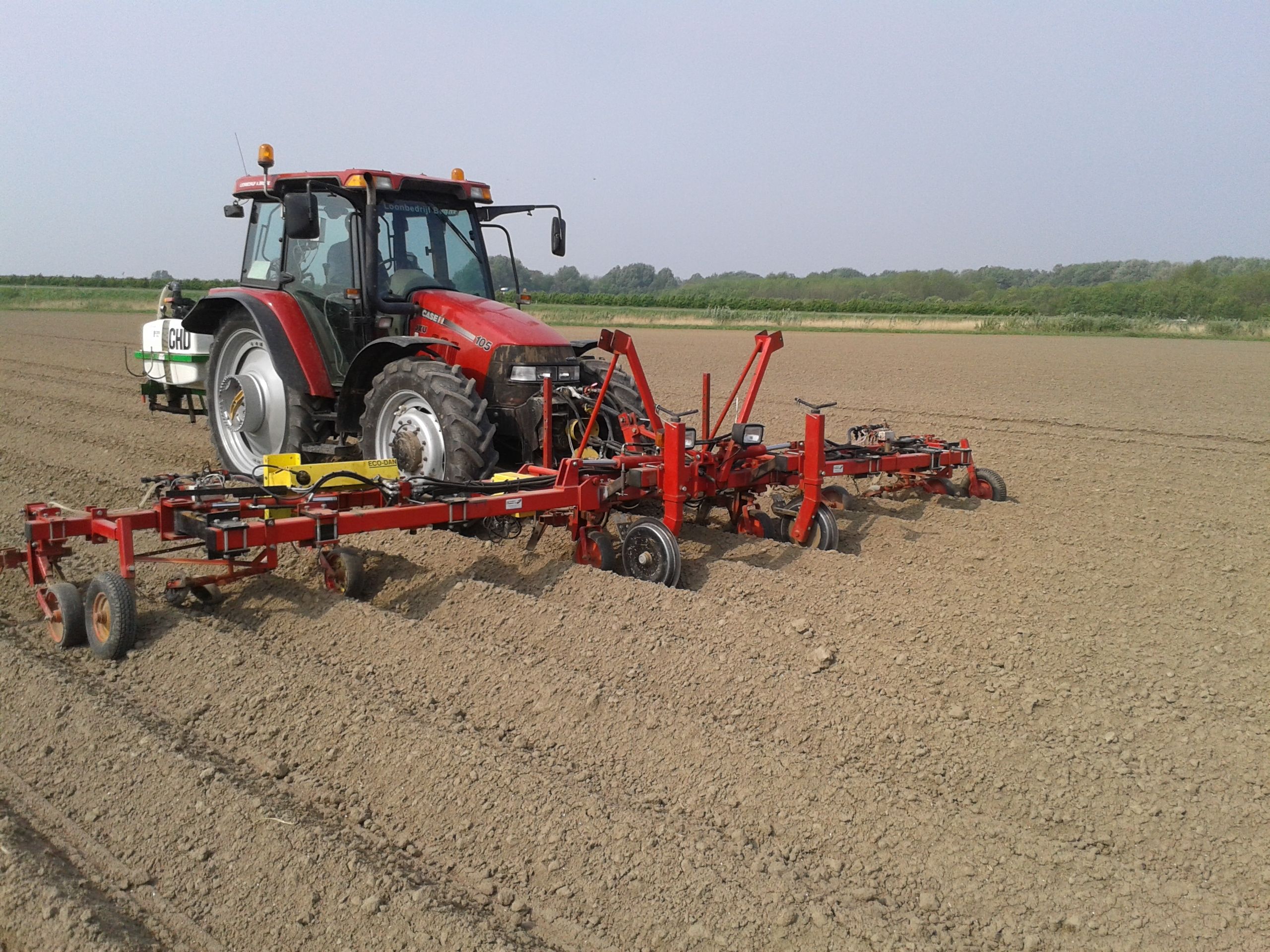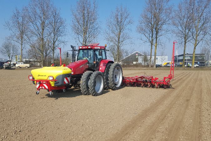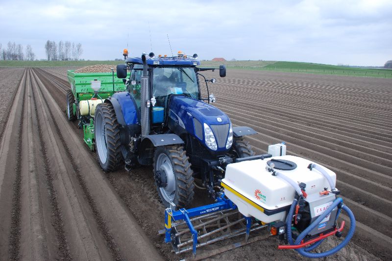 Vanwege de toenemende trend van aardappels poten met een aanaardkap, waren er geen mogelijkheden om rijenbemesting in aardappelen toe te passen. Om toch in de aardappelteelt een efficiënte fosfaatbenutting te verkrijgen en een hogere opbrengst met toediening in de rij te halen, zijn we gaan werken met de nieuwe all-in-one pootcombinatie. Hiermee wordt fosfaat in granulaat vorm en stikstof met urean in de rij toegediend. Deze combinatie is voorzien van de nieuwste techniek op het gebied van bemesting, poten, aanaarden en GPS besturing.