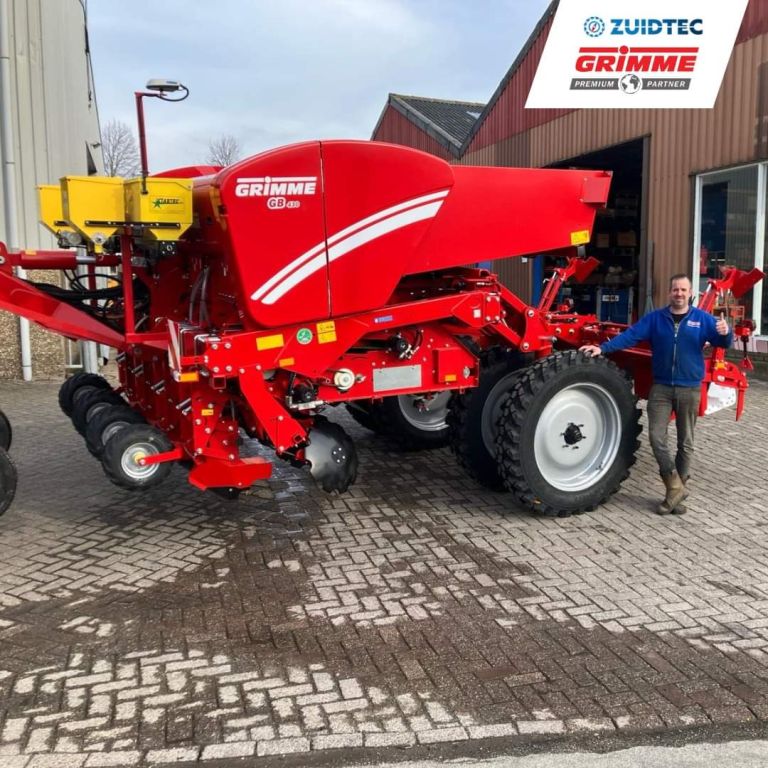 De nieuwe Grimme GB430 bandpootmachine is afgeleverd op ons bedrijf en is bezig om de eerste percelen aardappelen te poten. Wederom een mooie en uitgebreide pootcombi met ongekend veel mogelijkheden.