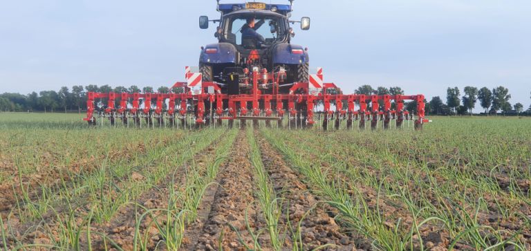 Het schoffelseizoen zijn we gestart met de nieuwe Steketee EC-Weeder met IC-Light camera besturingssysteem voor uien. De schoffel machine is voor de uienteelt op 2,25 meter bedden.